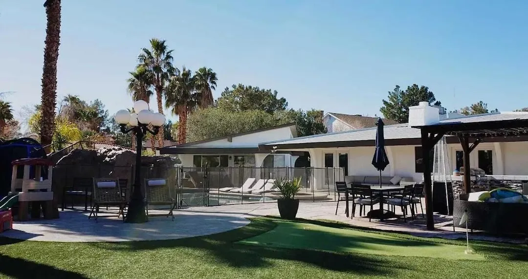 Cet établissement Luxury Villa, With Bonus Pool House, Private Pool, Hot Tub, Rock Water Fall And Slide, Putting Green, Basketball, Shuffle Board, Play Gym, Privately Gated On Circular Driveway est équipé d'une cuisine équipée avec une bouilloire électrique, un réfrigérateur et de la verrerie. Cette propriété de Las Vegas se trouve non loin de Mr Poké Bowls & Rolls, où vous pourrez déguster divers repas. L'arrêt de bus westbound SX Sahara & Rainbow est à environ 10 minutes à pied. Vous pourrez profiter de diverses activités telles que la randonnée, le mini-golf et le cyclisme.
